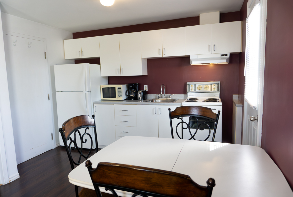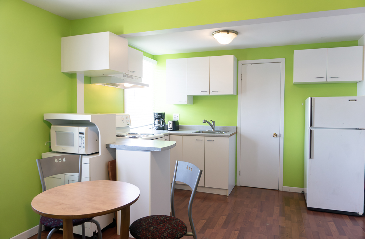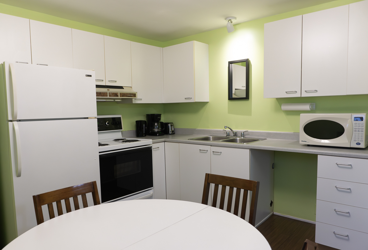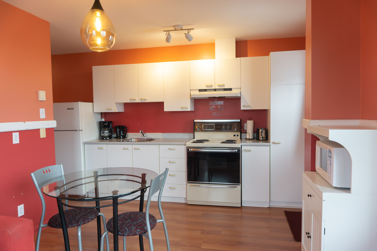 We offer six 3 ½ apartments, each with a fully equipped kitchen, including: